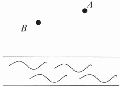15. (8 分)如图,点$A$表示小明家,点$B$表示小明外婆家,若小明先去外婆家拿鱼具,然后再去河边钓鱼,怎样走路最短?请画出行走路径,并说明理由.