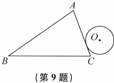 9. 如图,将半径为1 cm的圆形纸板,沿着三边AB,BC,CA分别长6 cm、5 cm、4 cm的$\triangle ABC$的外侧无滑动地滚动一周并回到开始的位置,则圆心所经过的路线长度是