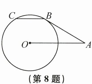 8. 如图,AB切$\odot O$于点B,若$OA=2\sqrt{3}$,$AB=3$,弦$BC// OA$,则劣弧BC的弧长为