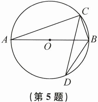 5. 如图,$AB$是$\odot O$的直径,$C$,$D$是$\odot O$上的两点,若$\angle ABC=70^{\circ}$,则$\angle BDC$的度数为