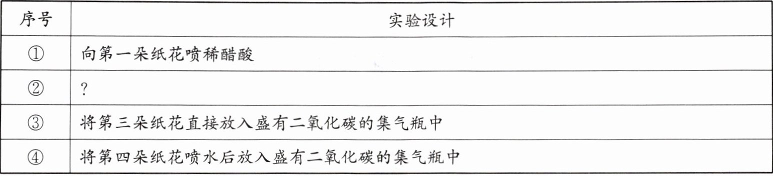。“实验设计②”的具体操作是向第二朵纸花上喷蒸馏水
