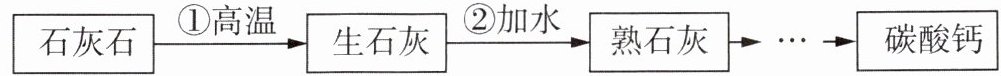 $11. ①CaCO₃ \stackrel{高温}{=} CaO + CO₂↑ ②CaO + H₂O = Ca(OH)₂$