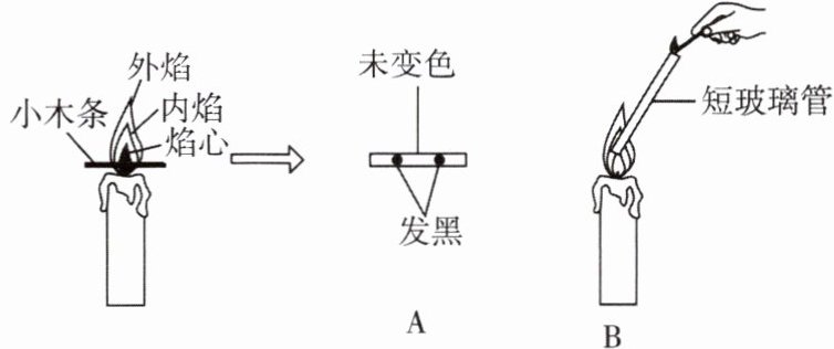 。上述实验中,平放入焰心火焰中的小木条现象如图 A 所示,这证明焰心温度最