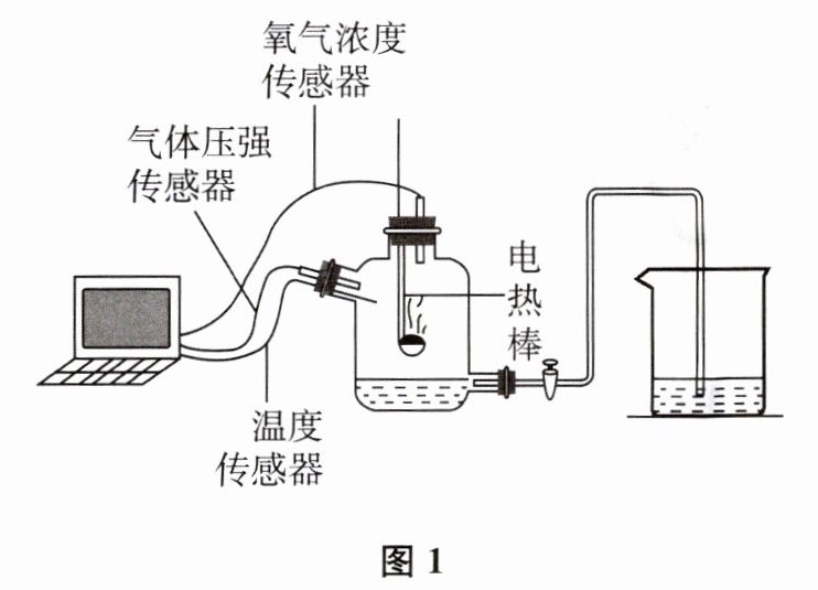 实验装置如图 1 所示,实验步骤:①将数显设备、三种感应器(气体压强、温度、氧气浓
