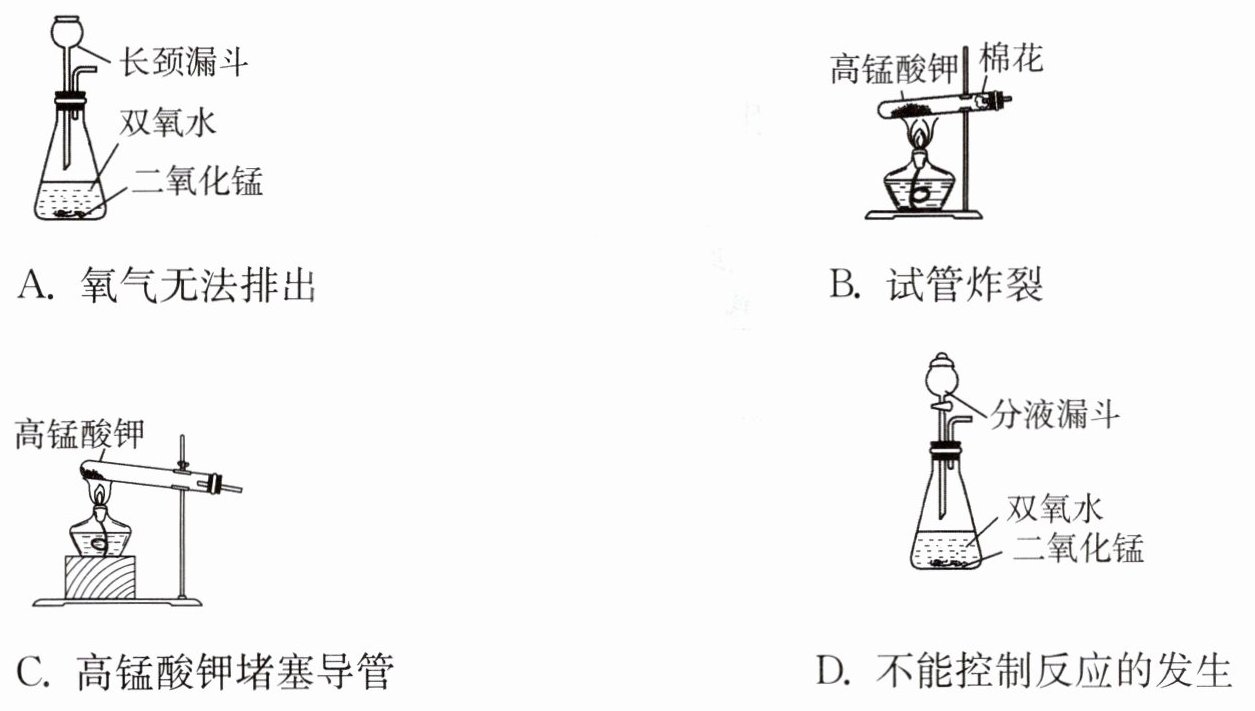 5. 下列是同学们组装的发生装置,但都存在一些错误,这些“错误操作”与“可能导致的后果”不对应的是