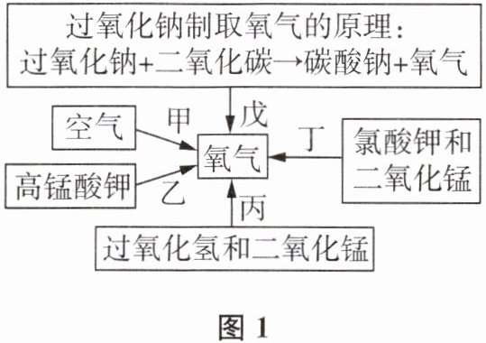 。(5) 根据图1中的制氧原理丁,如图3是学习小组最终制成的简易制氧机成品,小组使用实验室常见制氧药剂,将白色粉末和黑色粉末的混合物装填在制氧机中。写出该制氧机发生的反应的文字表达式: