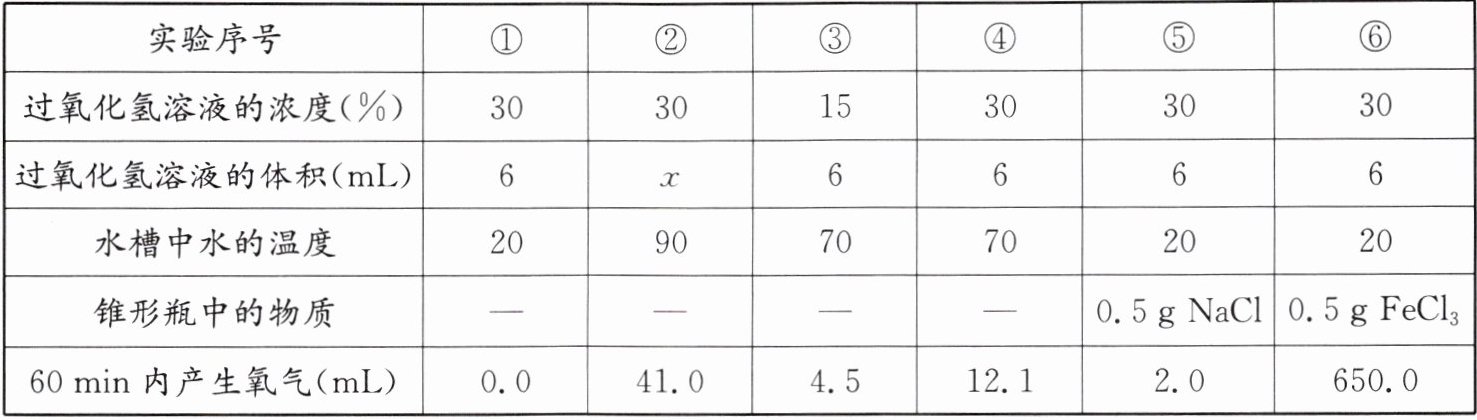 mL。(2) 实验①~⑥通过测定相同时间内产生氧气的体积来比较过氧化氢的分解速率,还可以测定