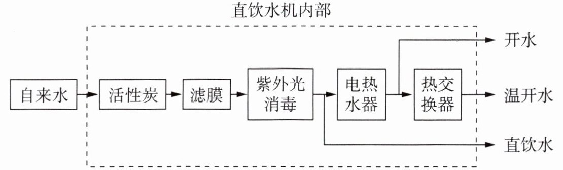 4. 目前许多学校安装了直饮水机,只要将它与自来水连接,便可以除去水中的部分杂质得到直饮水。某品牌直饮水机的工作原理如图所示,下列说法正确的是 (
