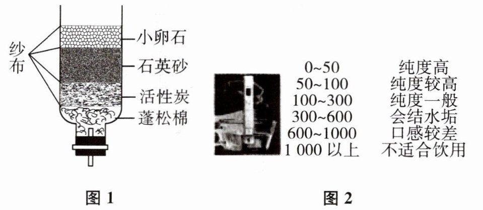 7. 学习完”水的净化”相关知识后,同学们利用身边常见材料自制如图1所示的净水器,并利用如图2所示常见市售水质检测仪检测净化后的水质,下列说法正确的是 (
