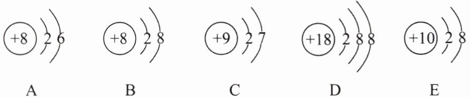 (4)A、B、C、D、E 中,具有相对稳定结构的粒子是