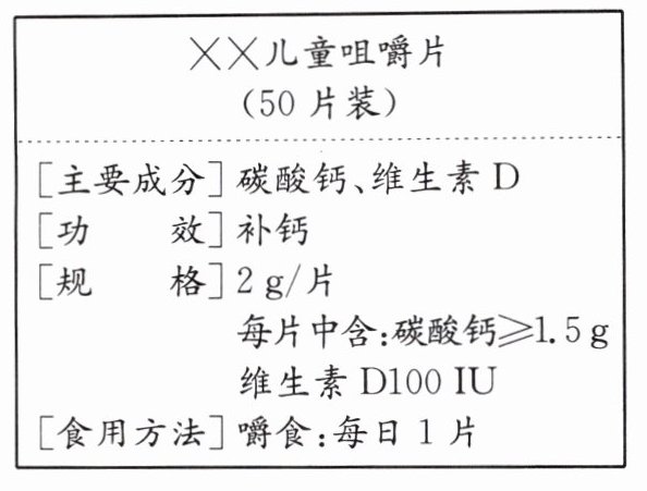 14. 如图为某厂生产的“盖天力”补钙片标签上的部分文字,请仔细阅读后回答下列问题: