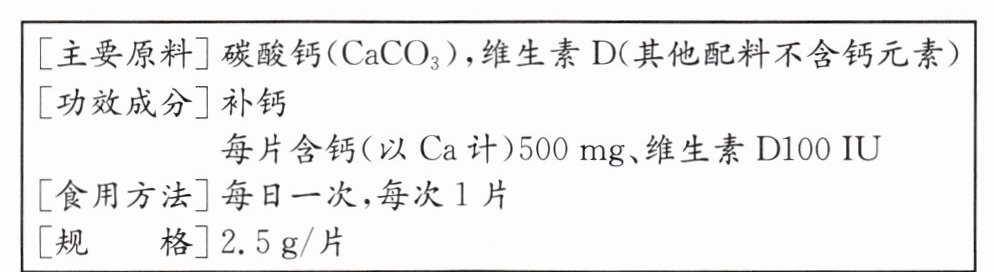 D.若某人每天除从食物摄取钙元素外,还需通过服用此钙片补充 $1.2g$ 钙元素,则需要每天服用 $2$ 片该钙片
