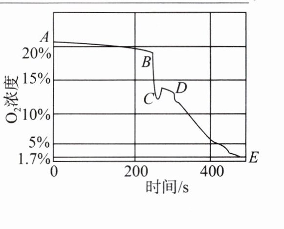 (填字母)点时红磷燃烧熄灭。请你解释曲线 AB 段、DE 段氧气浓度变化的主要原因:AB 段
