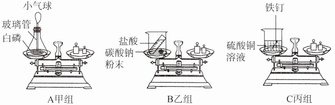 A、B、C三个实验分别由甲、乙、丙三个组的同学来完成,他们都进行了规范的操作、准确的称量和细致的观察。