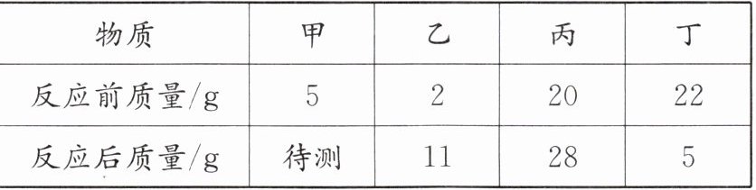 9. 在一个密闭容器中,甲、乙、丙、丁四种物质在一定条件下充分反应后,测得反应前后各物质的质量如下表。下列说法错误的是