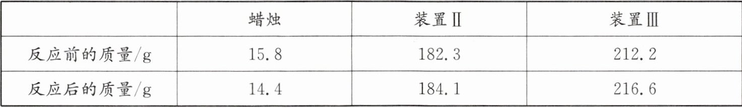 。(3) 理论上,装置Ⅱ和装置Ⅲ增加的总质量大于蜡烛失去的质量,其原因是