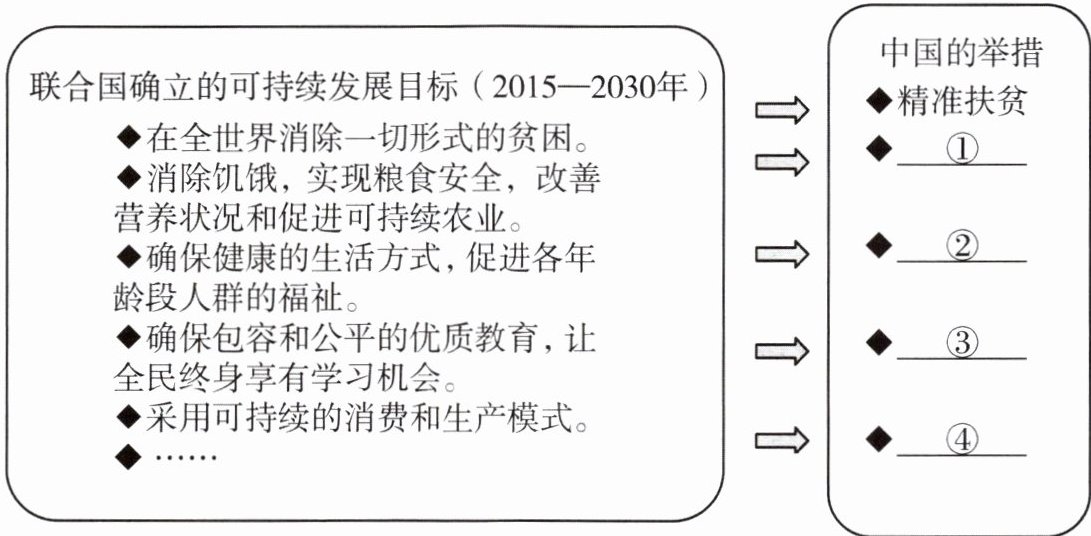 (2)请参照示例,结合联合国可持续发展目标,分别列举出中国的相应举措。(8分)