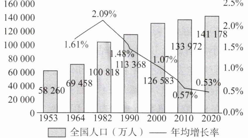 8. 下图为新中国成立以来历次全国人口及年均增长率统计图。以下对该图信息解读正确的是( )
