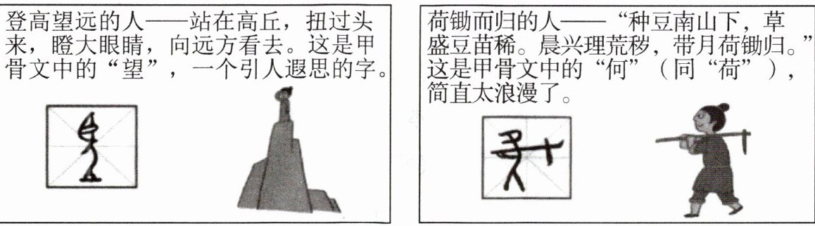荷锄而归的人——“种豆南山下,草盛豆苗稀。晨兴理荒秽,带月荷锄归。”这是甲骨文中的“何”(同“荷”),简直太浪漫了。