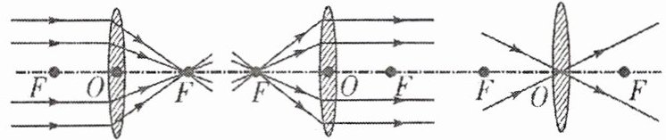 过光心的光线传播方向不变,所以从左侧水平入射过光心$O$的光线,其折射光线沿直线传播。