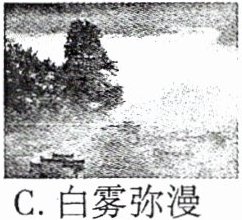 C选项,白雾弥漫是空气中的水蒸气遇冷变成液态的小水珠,形成雾,这也是液化现象,不是凝华现象,所以C选项错误。
