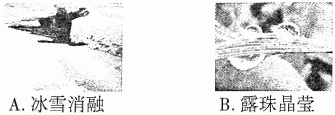 B选项,小冰晶在下落过程中熔化为小水珠,熔化是物质从固态变为液态的过程,这个过程也需要吸收热量,所以B选项不符合题意。