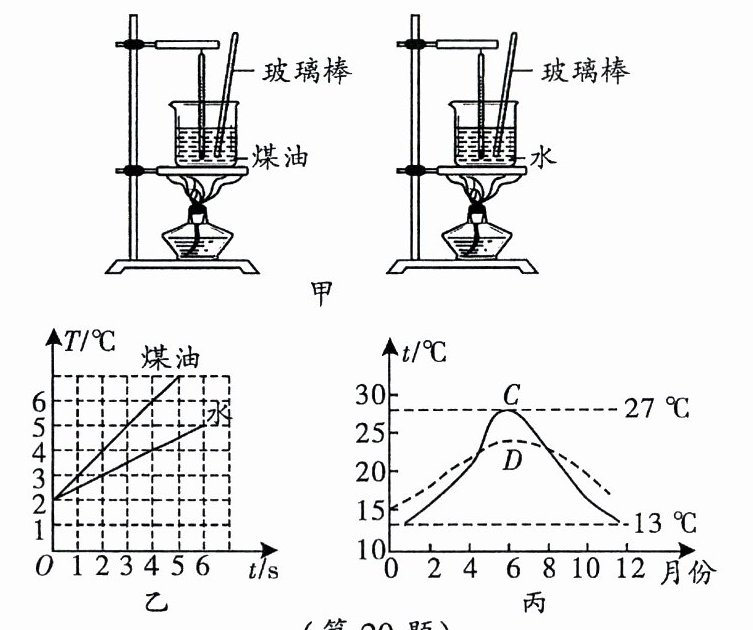 20. 如图甲所示是“比较水和煤油吸热升温特点”的实验装置。