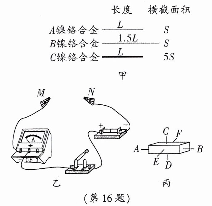 一定不同。(4)若将如图丙所示的长方体金属块接入电路,你认为沿