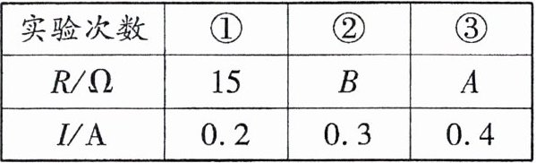 ②将$15\ \Omega的电阻替换为B$,要使$B$两端电压达到固定值,变阻器接入的阻值应比前次实验