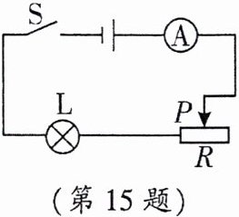 15. (2024·眉山)如图所示电路,电源电压恒定,滑动变阻器R标有“20 Ω 2 A”,灯泡L标有“4 V 2 W”,灯泡电阻不变。S闭合,滑片P在R的中点时,灯泡正常发光,则电源电压为