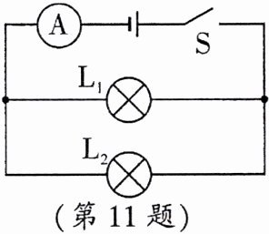 11. 如图所示,电源电压恒定不变,灯$L_1$标有“3 V 3 W”字样,灯$L_2$标有“3 V 6 W”字样,闭合开关S,两灯均正常发光。求: