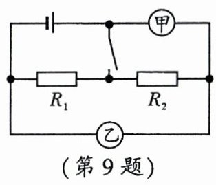 B.若甲表是电流表,乙表是电流表,则电阻$R_1、$$R_2$串联