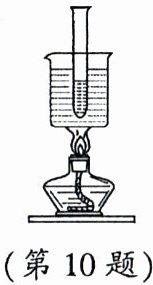 10. 如图所示,在一个大容器中装有水,同时在水里放了一根试管,试管中也装有水,在用酒精灯给大容器中的水加热至沸腾的过程中,小试管中的水(