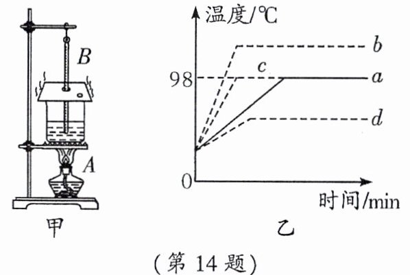 14. (2024·枣庄)某实验小组探究“水在沸腾前后温度变化的特点”,所用实验装置如图甲所示。