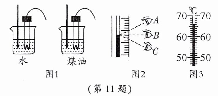 (填测量工具)、托盘天平(含砝码)、水和煤油。(2)选取两个相同规格的电加热器进行实验,是为了通过比较