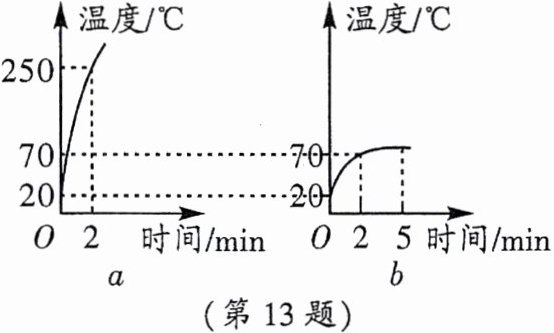 (2)解:由图b可知,加热2min时水的温度从20℃升高到70℃,水的质量$m_水=200g=0.2kg$,温度变化$\Delta t_水=70℃ - 20℃ = 50℃$。