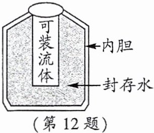 12. *网上曾热销一种“55度杯”,称“能很快将开水变成适饮的温水,而后又能将凉水变成适饮的温水”。为破解此中秘密,某中学物理小组设计了如图所示的模型。设此模型杯内胆中封存着300g水,室温为20℃;现向杯中倒入200g、100℃的开水,摇一摇,热平衡后杯内水温迅速降至$t_1= $