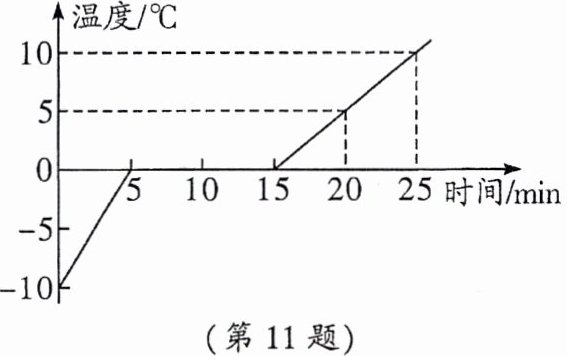 11. (2025·巴蜀)如图所示,用同一酒精灯加热使50g冰熔化成水,将实验数据绘制成温度随时间变化的图像(假设在加热过程中物质的质量不变,单位时间内吸收的热量相同),根据图中信息,算出c冰:c水=