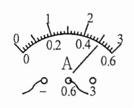 2. 改接另一量程为0~3A,分度值0.1A,指针位置不变,读数为2A + 5×0.1A = 2.5A。