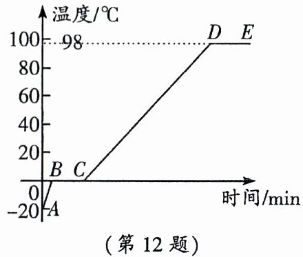 12. 缺水地区的冬季,当地有些居民靠取冰雪来获得生活用水。如图所示是将一定质量的冰雪从-20 ℃加热到沸腾的过程的温度随时间变化的图像(不考虑水中杂质产生的影响),下列对图像分析正确的是(