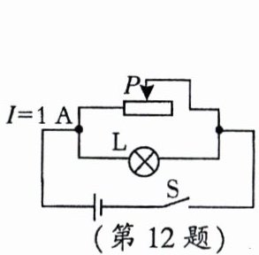 12.如图所示,已知滑动变阻器的规格为“15Ω 1A”,灯泡L上标有“6V 3W”的字样。当灯泡正常发光时,干路电流为1A,此时滑动变阻器接入电路的阻值为