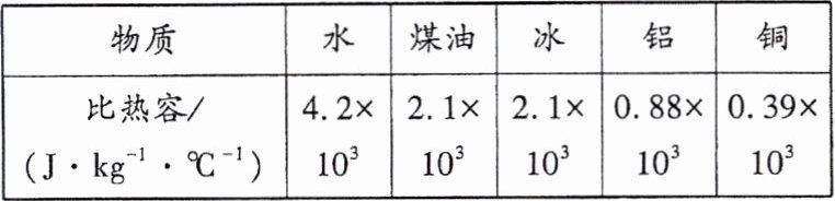 A选项:由表格数据可知,煤油和冰的比热容是相同的,所以不同物质的比热容可能相同,该选项错误。