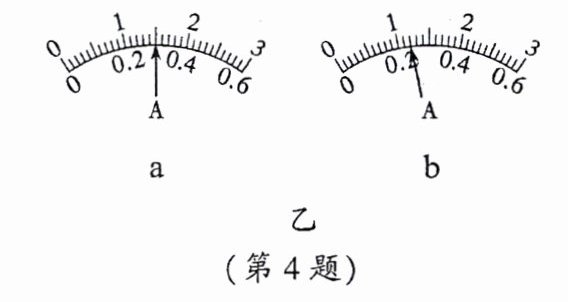 4. 如图甲电路所示,当开关S闭合后,两灯均发光,电流表的指针偏转如图乙所示,其中a电流表测的是通过
