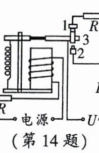 14.如图是某恒温箱工作原理的简化电路图,R是一个热敏电阻。当温度降低时,热敏电阻R的阻值变小,电磁铁的磁性