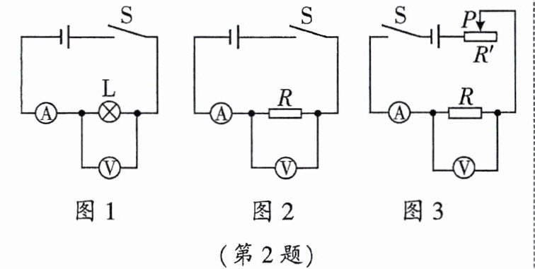 2. 在探究电流与电压关系的实验中,同学们设计了如下三种电路: