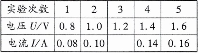 | 电流 I/A | 0.08 | 0.10 | | 0.14 | 0.16 |