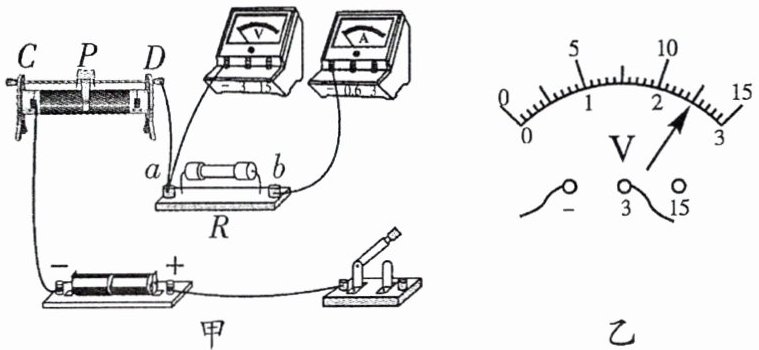 (选填“C”或“D”)端。(4)某次实验电压表示数如图乙所示,电压为