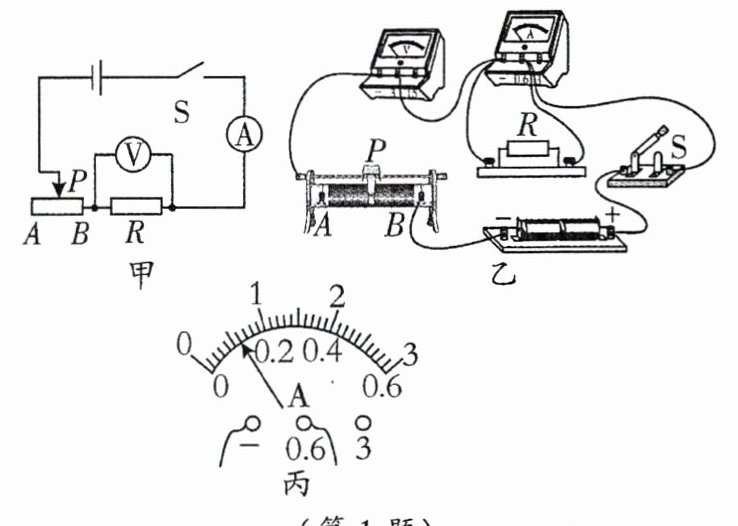 (4)由表格数据可知,电压表示数逐渐增大,根据串联电路电压的规律,滑动变阻器分得的电压减小,由分压原理可知,滑动变阻器接入电路的电阻应减小,所以滑片应向B端移动。由图丙可知,电流表量程为0 - 0.6A,分度值为0.02A,读数为0.12A。