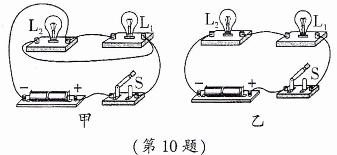 10. (2025·育才)小李在电学实验探究时,将两只灯泡分别接在图甲、乙两个电路中,以下说法正确的是(