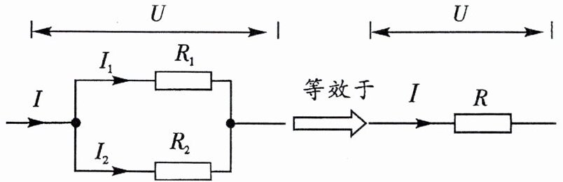 注:无论是在串联还是并联电路中,都可以用一个电阻来替代几个电阻在电路中的作用,这一个电阻的阻值就是这几个电阻阻值的总电阻。在物理学中,我们称之为等效替代法。